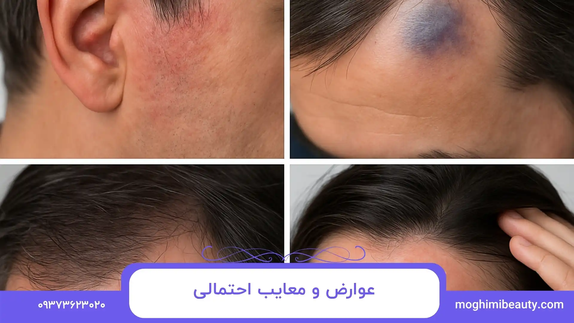 هرچند PRP نسبتاً ایمن است، ممکن است مواردی مانند قرمزی موقت، تورم خفیف، درد موضعی یا ایجاد کبودی کوچک در محل تزریق رخ دهد که معمولاً طی چند روز برطرف میشود. در برخی افراد با انتظارات غیرواقعی یا در موارد طاسی پیشرفته، نتایج ممکن است محدود باشد؛ همچنین برای اثربخشی کامل نیاز به تکرار جلسات است که از معایب قابلذکر این روش بهشمار میآید. رعایت پروتکل های استریل و انجام توسط تیم مجرب (مثل تیم ما در مرکز تخصصی زیبایی مقیمی) ریسکها را به حداقل می رساند.